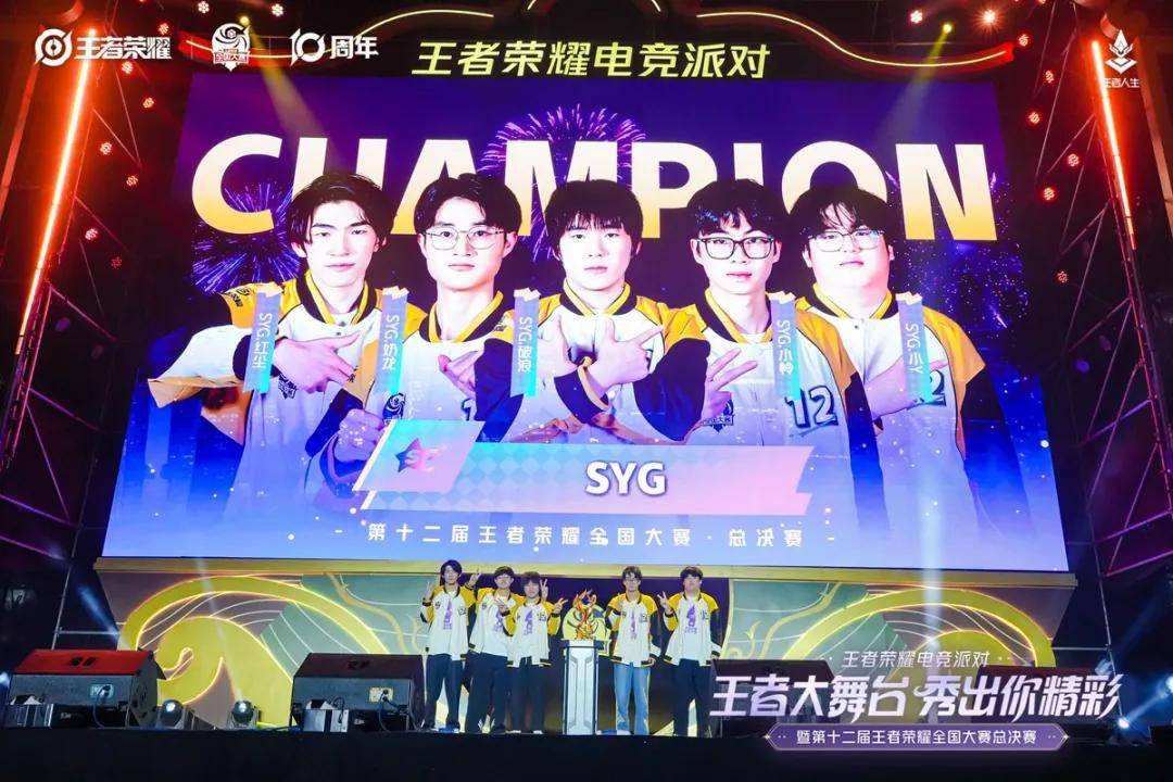 2025年10月4日,王者荣耀电竞派对暨第十二届王者荣耀全国大赛总决赛激战正酣,本日共决出了【卡牌赛】总冠军“我叫于家鑫”,【Solo赛】总冠军“情话”和【专业组】总冠军“SYG战队”等多个冠军,同时“SYG战队”也获得了 2025 年王者荣耀挑战者杯参赛资格与 2026 年王者荣耀甲级职业联赛直升资格。