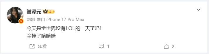 原以为是一次再正常不过的停机维护,却让全国玩家苦苦等了10个小时。下午2点不到,游戏停服超过8小时仍未开服,作为《英雄联盟》赛事官方解说的管泽元在社交媒体表示,“今天是全世界没有LOL的一天了吗!全挂了哈哈哈”。