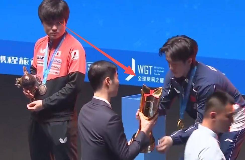 颁奖仪式上,中国乒乓球协会主席王励勤亲自为王楚钦颁发了象征荣耀的冠军奖杯。而站在亚军领奖台上的张本智和,目光却始终锁定在王楚钦手中的奖杯上,眼神中充满了渴望与不甘,这一幕被直播镜头捕捉,迅速在网络上引发热议,更有网友戏称其“眼神都快拉丝了”。