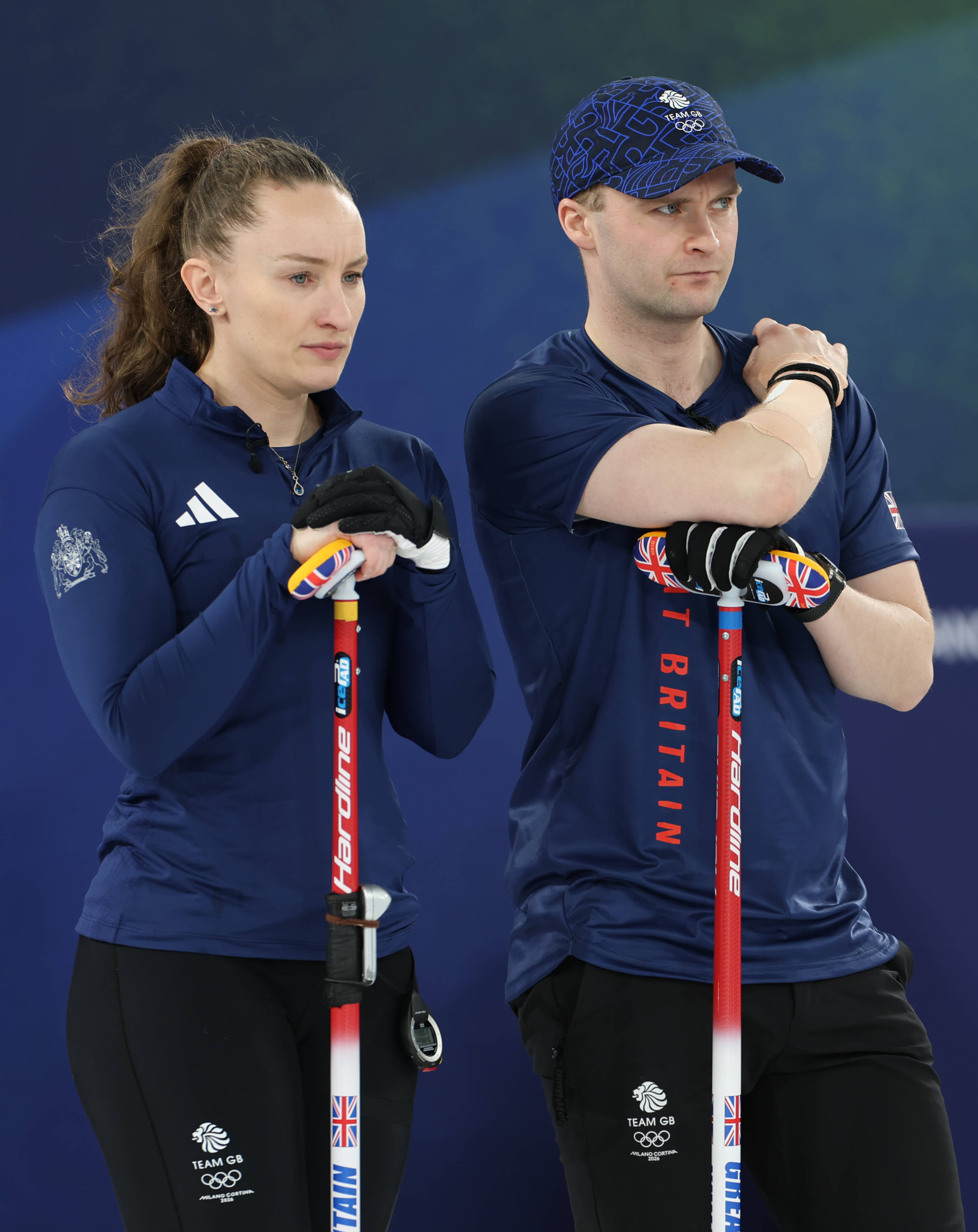 2月9日,英国队选手布鲁斯·莫阿特和珍妮弗·多兹(左)在比赛中。 新华社记者 丁旭 摄
