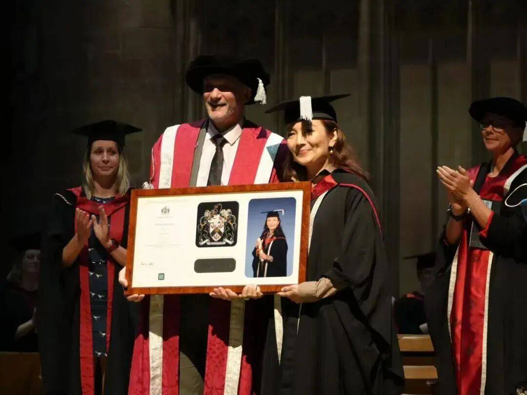 2025年11月6日,英国哈特伯瑞大学(Hartpury University)在格洛斯特大教堂举行年度毕业典礼,向天星调良马术创始人&总裁王蔷女士(Michelle Wang Qiang)授予荣誉学位。王蔷女士是本年度哈特伯瑞大学马术领域唯一的荣誉学位获得者,也是首位获此殊荣的中国人,该荣誉旨在表彰其“对国际马术运动和实践发展做出的积极贡献”(contribution to the development of equestrian sport and practice internationally)。